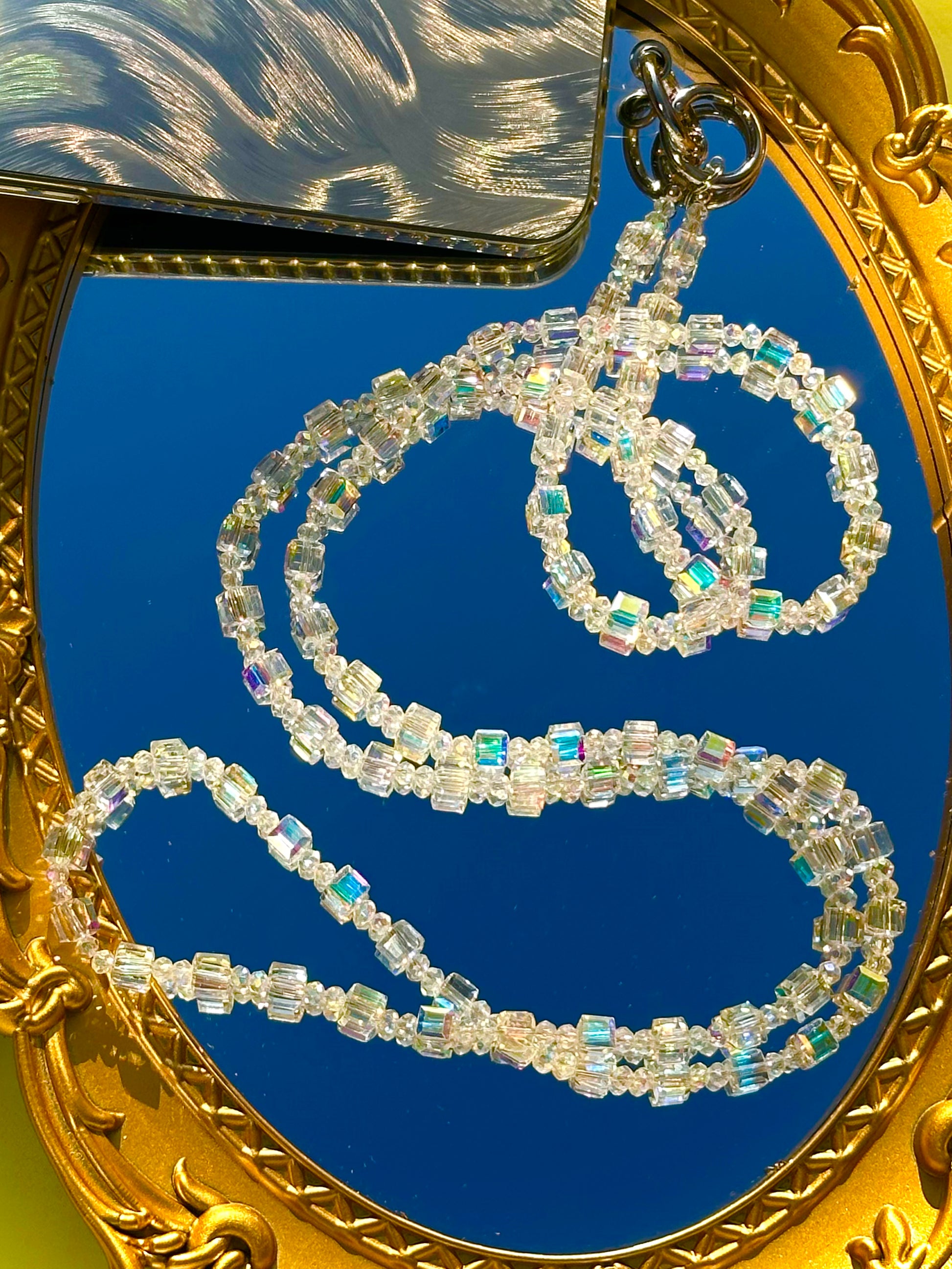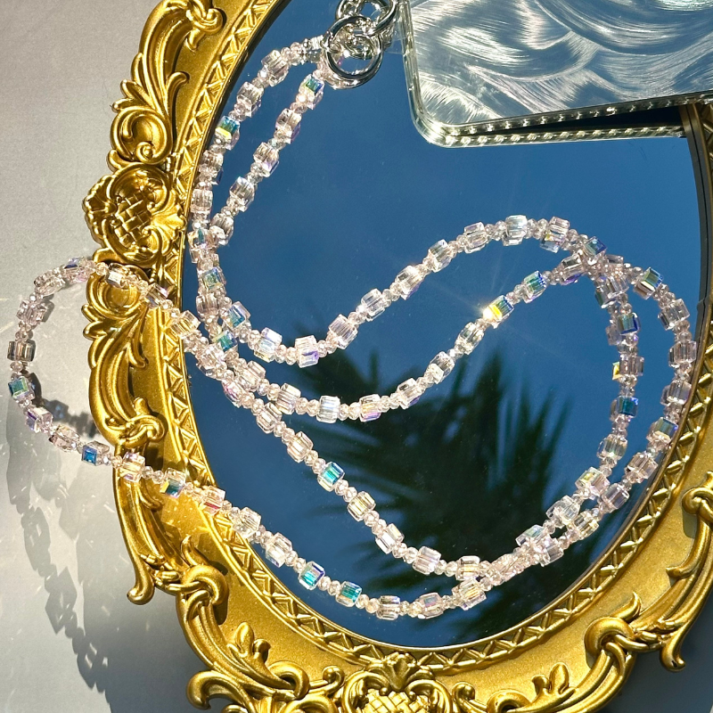 💗Crafted with shimmering iridescent crystal cube beads and silver-tone metal rings, this lanyard blends glamour with practicality. The cube-shaped crystals catch light from every angle, showcasing rainbow hues that add a playful yet chic touch to any outfit. Adjust the length (approx. 36-40 inches; custom sizing available) to wear it as a crossbody strap or shorten it for a shorter drop—ideal for shopping, commuting, or traveling.