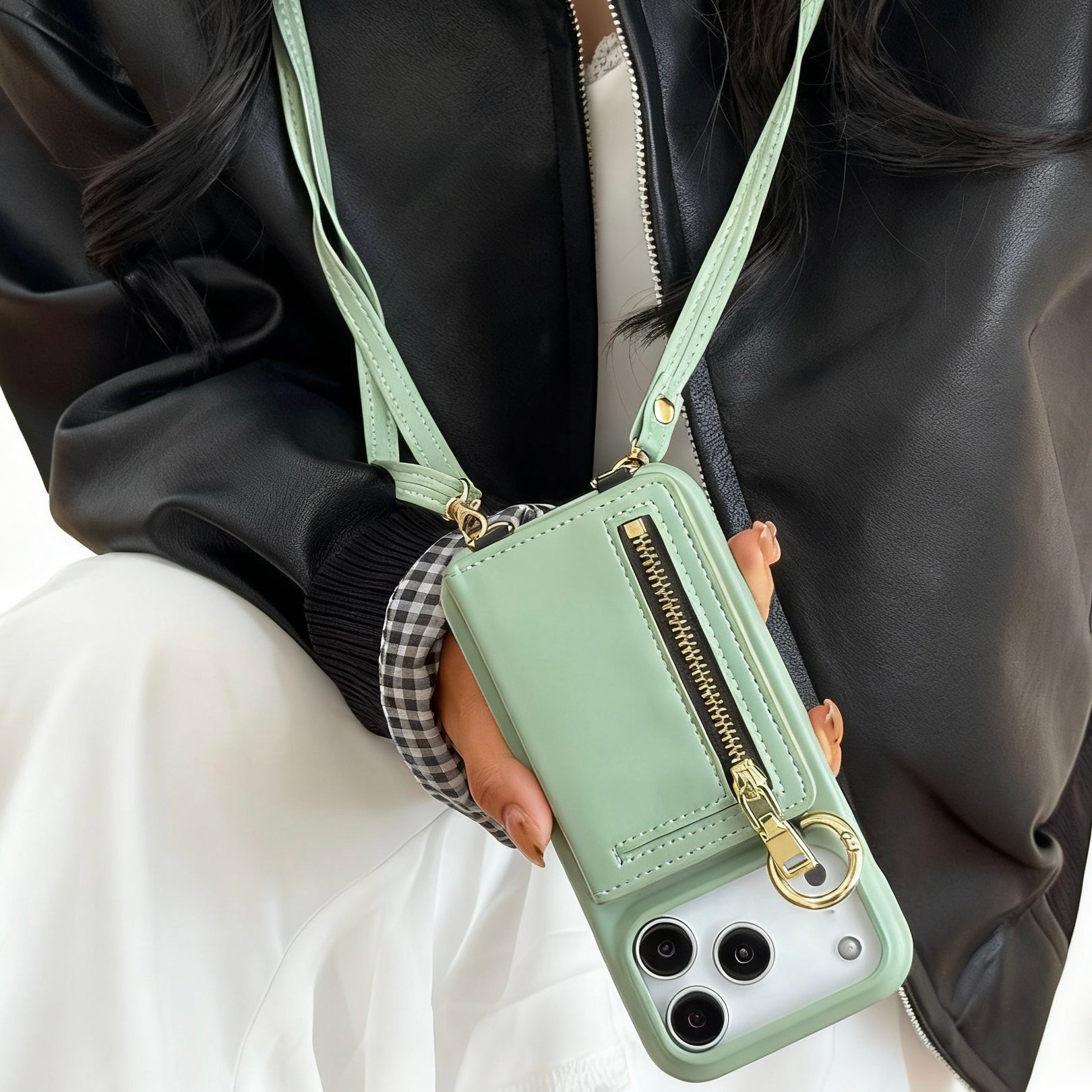 iPhone 17/16/15/14/13 Case Wallet, Luxury Leather Phone Purse With Card Slots, Lanyard Detachable Case