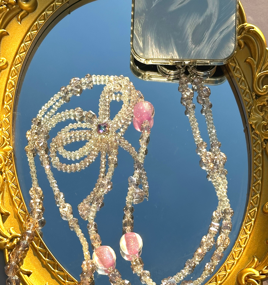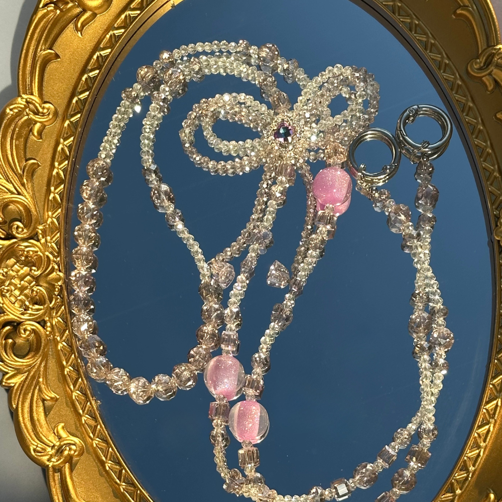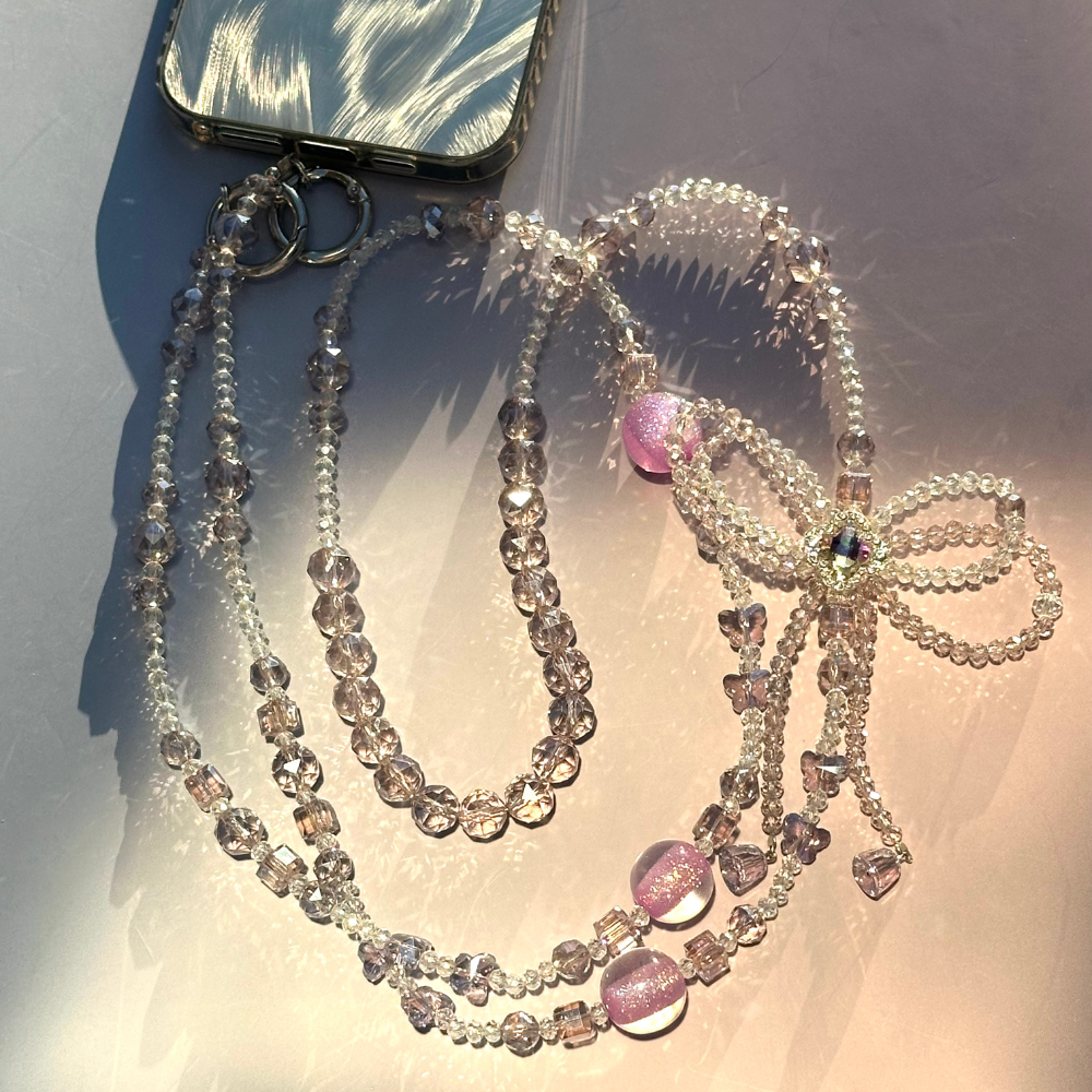 Handmade Bow Purple Crystal Beaded Lanyard, Crystal Phone Charm, Phone Chain, Phone Lanyard( Tab Included)